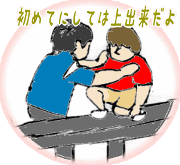 | 妹・りさこの手をひいて、歩いて帰ってくる健一。 りさこは保育園の感想を兄の健一に話している。 りさこ「それでね。りさこがジャンケンしようって言ったらね、みんなジャンケン知らないからりさこが教えてあげたの」 健一「カッコイイ男の子、いたか?」 りさこ「ケンタくんってコがね。お菓子をくれてね。まんなかに穴があいてて、吹くとピーッて音がするの」 健一「お菓子でだまされるなよ。お兄ちゃん、りさこの将来が心配だな〜」 りさこ「お返しに、ホッペにチュウしてあげた」 家への、のどかな帰り道・・・。 |