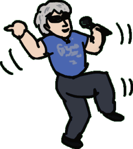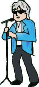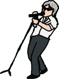省吾はイスに座って、ハンドマイクを手に歌っていました。