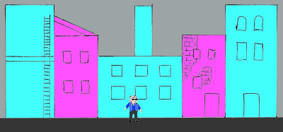 背景の建物がライトブルーとライトピンクにあやしく交互に明滅していました。