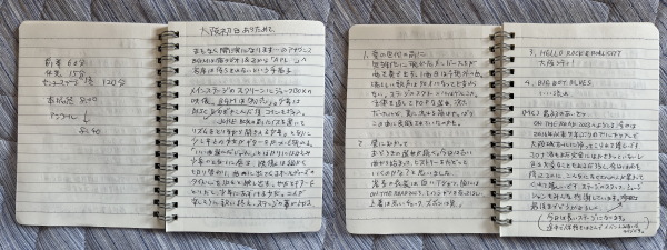 と言っても、ライブ中は暗くてメモなんてとれないし、ライブに専念しています。