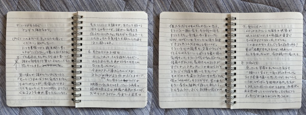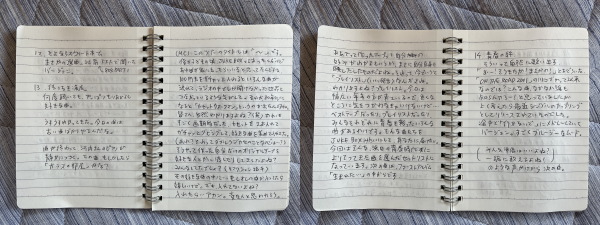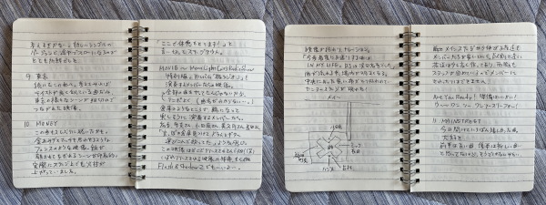布団でメモにガリガリ書いていきました。