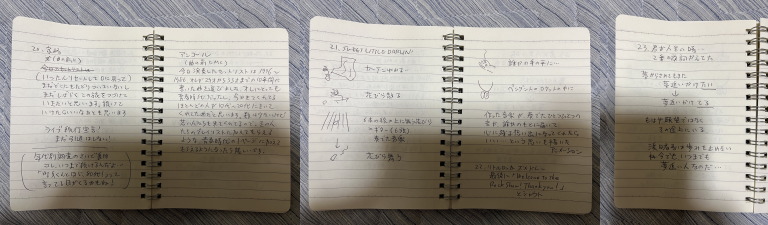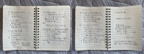 だけどその順番、流れはバラバラになっちゃうから、セットリストを観て記憶をズルズル引き出す感じです。