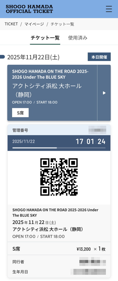 ちなみに今回は奥さんがモバイルサイトの会員になってとれたチケットなので、僕が「同行者」になっています。