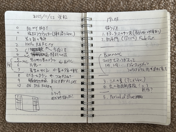 この後休憩の時に、前半の曲だけをいつもメモに走り書きしておくんですよね。