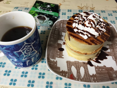 家に帰ると、奥さんがフワフワパンケーキを焼いてくれていました♪