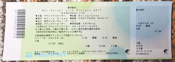 | 2017/3/26(日) | 倉木麻衣大阪ライブ |