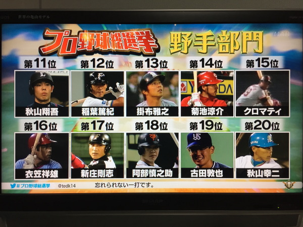 SNS上で話題沸騰。1月8日に放送されたテレビ朝日系『ファン1万人がガチで投票! プロ野球総選挙』(C)テレビ朝日