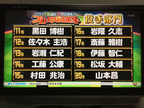大谷くんが4位に入ってくるかなぁ。それはちょっと過大評価すぎる気が。