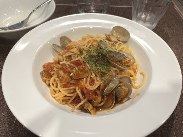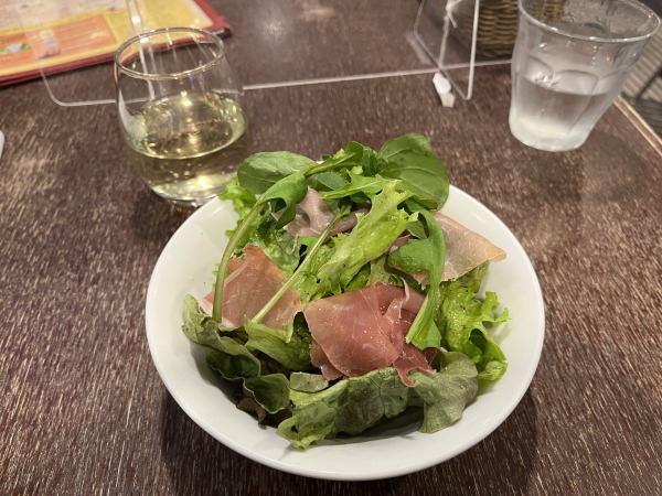 オーダーしたのは、前菜のサラダと、グラスの白ワイン。