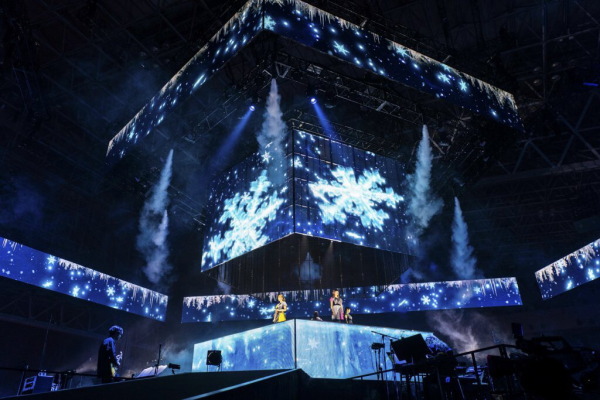 真ん中のステージでは、クリスタルのような箱状のモニターが上下して、すごく綺麗。