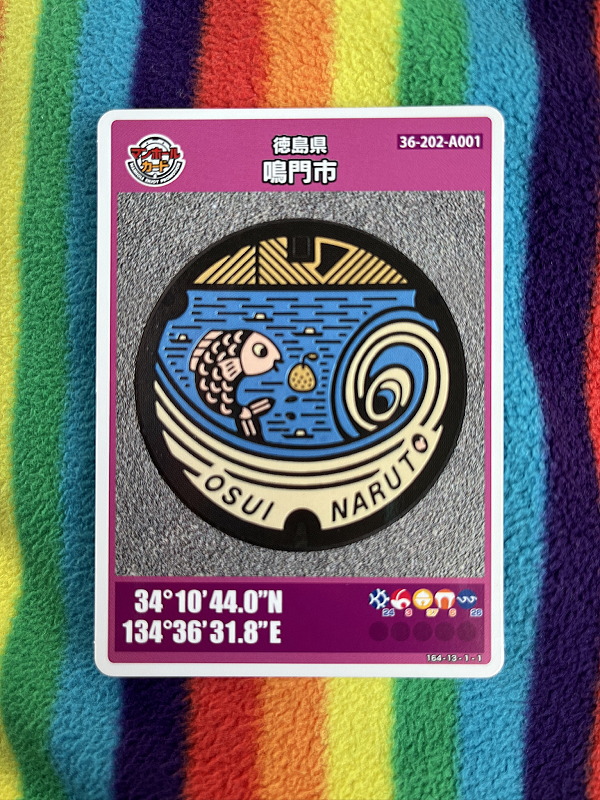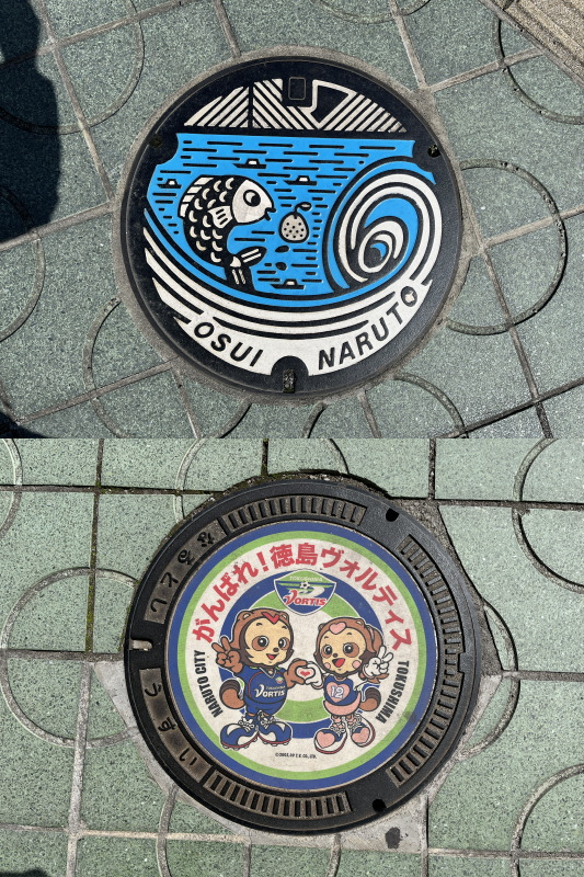 実際のマンホールは鳴門の駅前にあります。カードのものより少し色褪せてる感じでした。