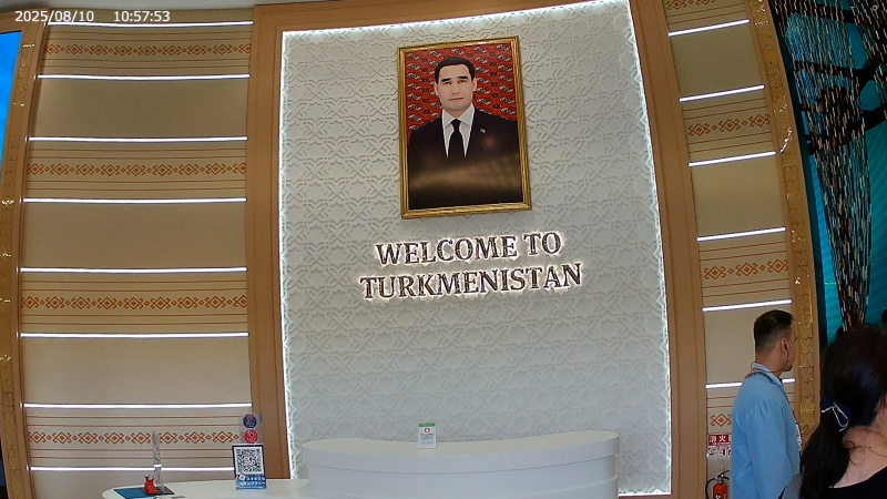 パビリオンの入口には、セルダル・ベルディムハメドフ大統領の肖像が飾られています。