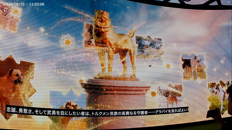 館内に入って最初の広間で、巨大なスクリーンに投影されたトルクメニスタンの歴史を視聴しました。