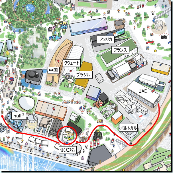 トルクメニスタン館を出て、そろそろお昼にしようかと歩いてた途中で「null2」というパビリオンがありました。