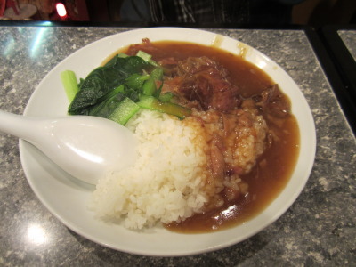 奥さんはここの名物、「牛バラ肉の煮込みご飯」。