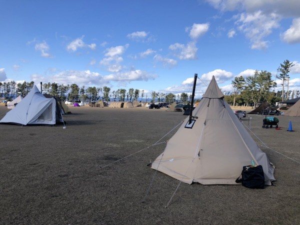 管理棟の外に出てすぐのキャンプ場では、幾つかのテントが張られていました。