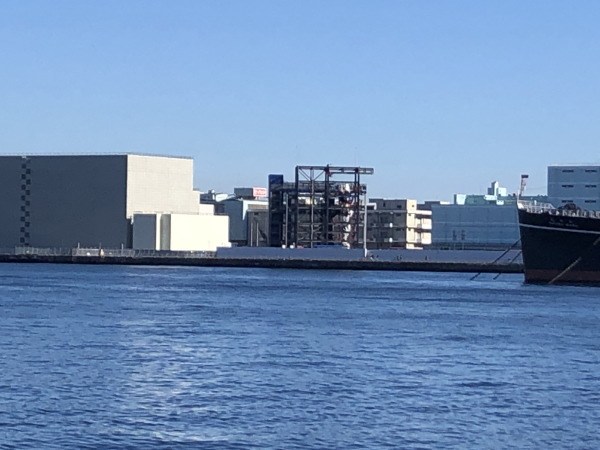 ここから右手を振り返ると、氷川丸があって、その向こう…