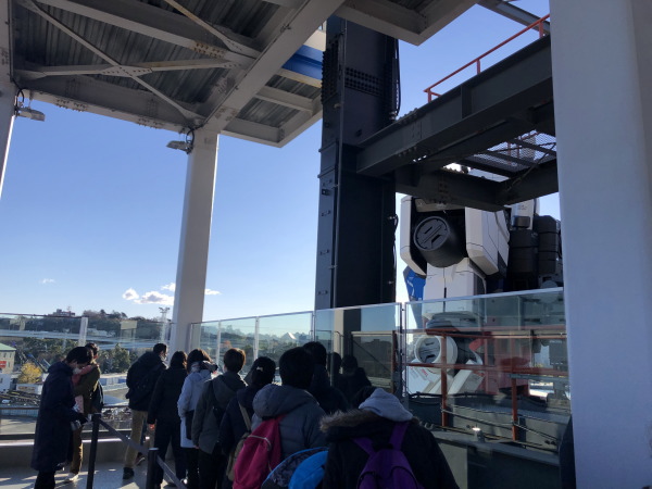 2階のデッキは自由に出入りできるので、少し離れた位置からガンダム全体を見られます。