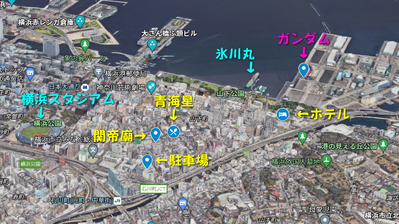 中華街から「動くガンダム」のある湾岸エリア「山下埠頭」までは、歩いて10分ぐらい。